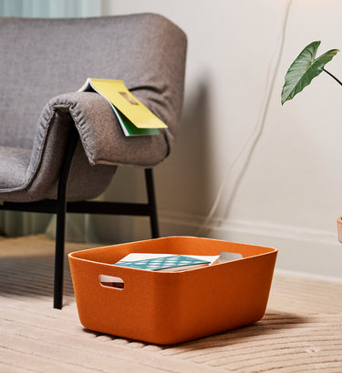 Mit der Re-Boxx bringst du nicht nur Ordnung in deine Räume, sondern setzt auch ein Statement für Nachhaltigkeit. Dieser umweltfreundliche Korb ist in 10 Farben erhältlich und passt perfekt zu jedem Einrichtungsstil.